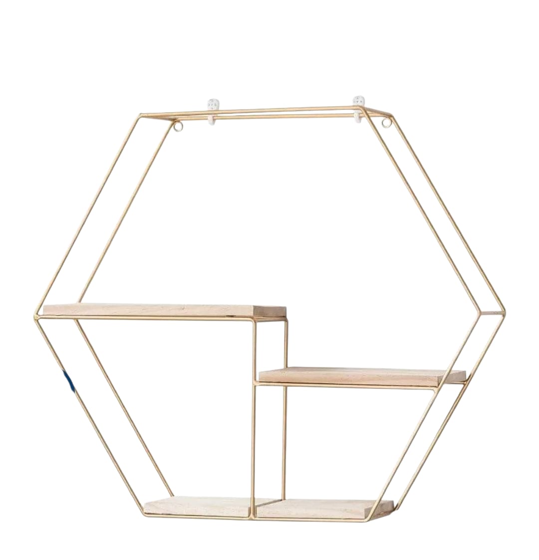 מעמד שולחני משושה שתי קומות עץ זהב
